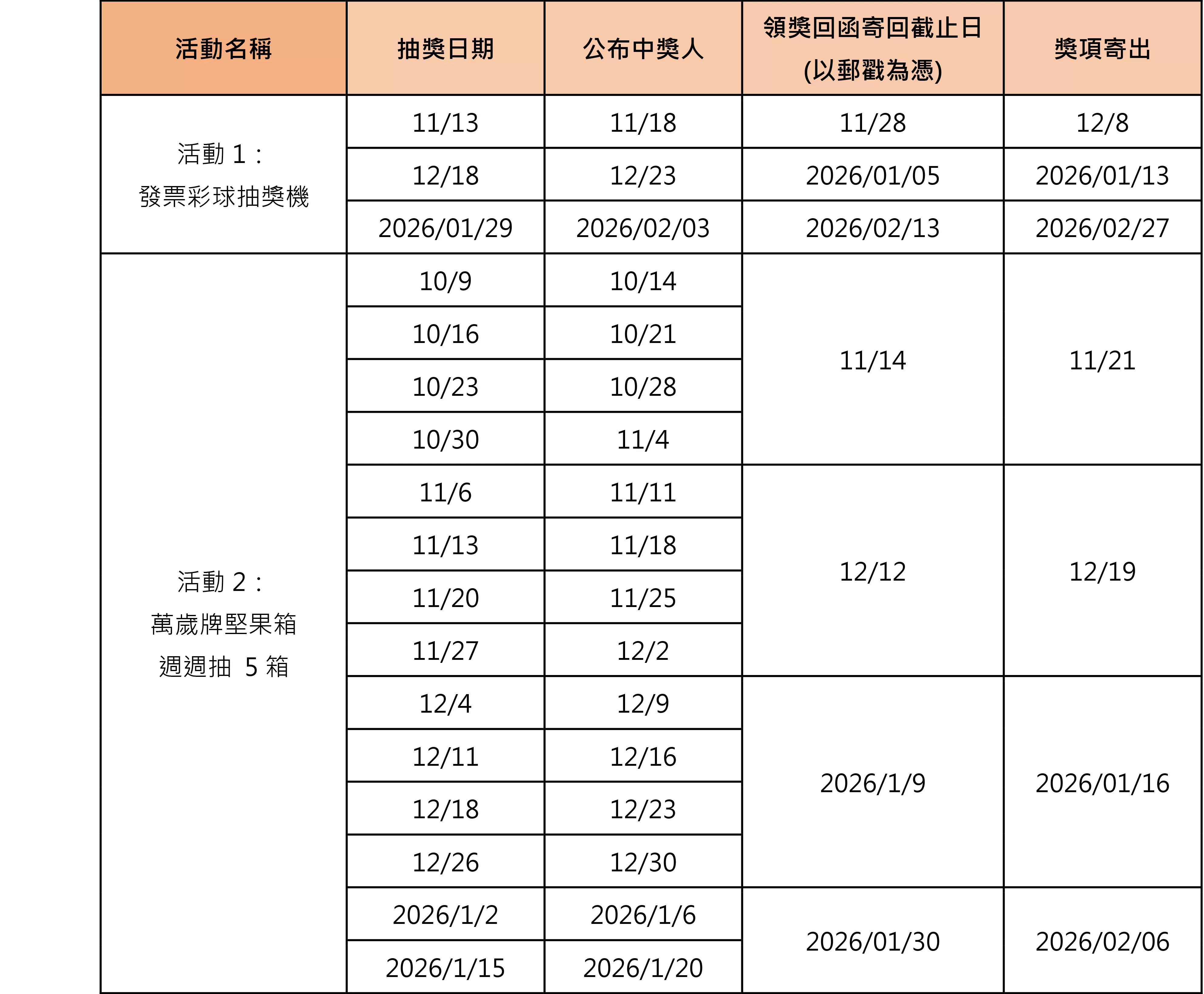 • 活動2:萬歲牌堅果箱 週週抽5箱