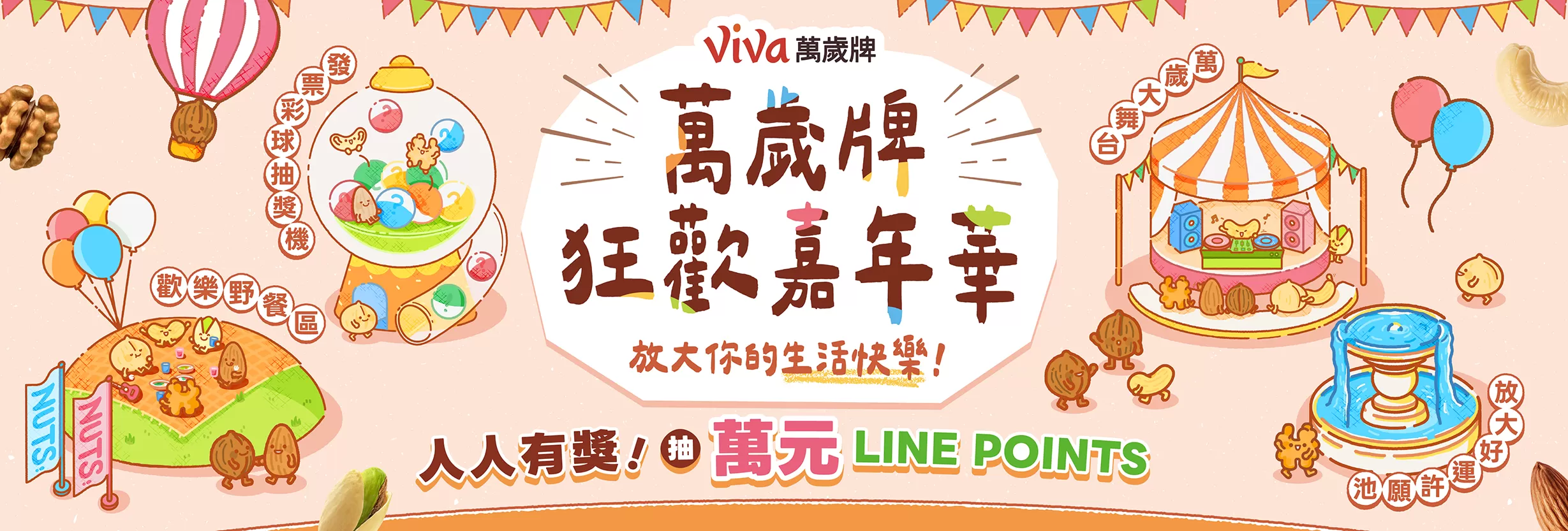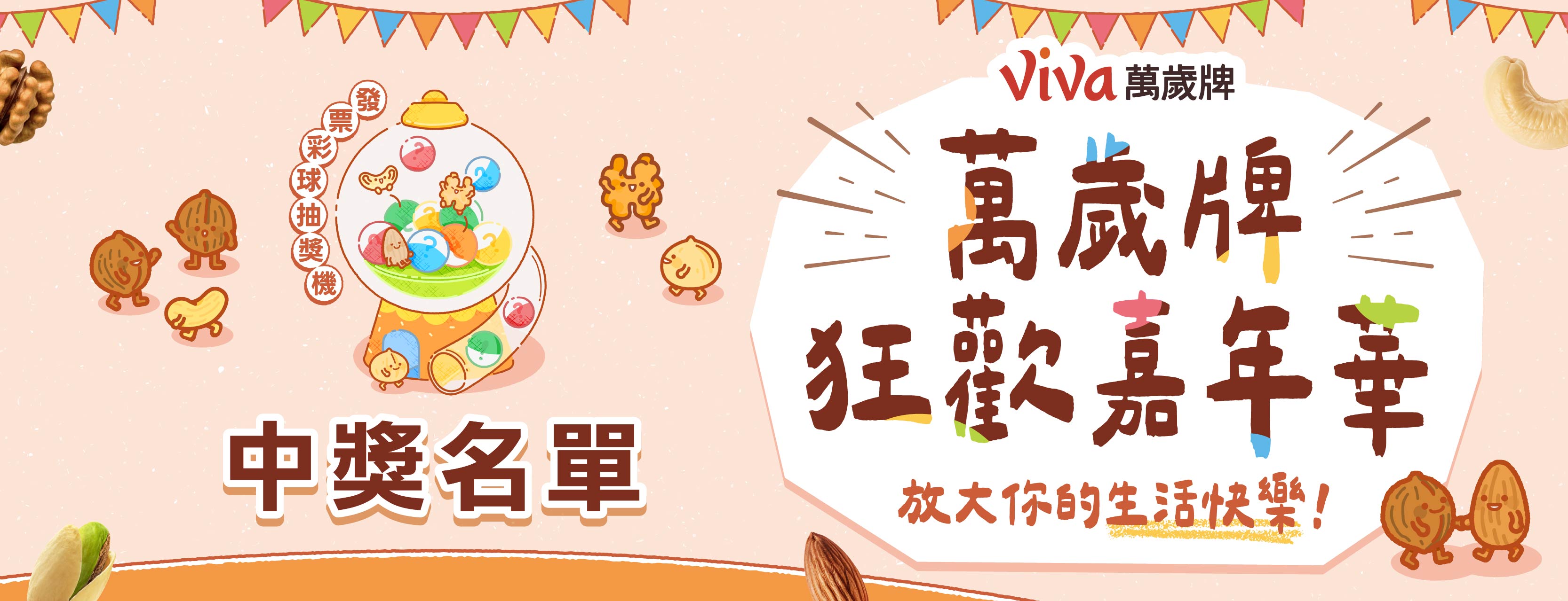 萬歲牌堅果原料,皆是聯華食品採購團隊親臨世界各地堅果產地所精心挑選,並在生產製程上持續不斷精進,堅持提供最優異的堅果品質,多年來深受消費者喜愛,成為眾所周知的台灣堅果第一品牌。產品開發方面,萬歲牌持續推陳出新,從純堅果到混搭果乾、小魚等原料,從不同調味方式滿足消費者口慾,從堅果隨手包到體面大方的堅果禮盒,更拓展到喝的堅果沖調飲,提供全家大小最健康的零食點心,讓大家吃得滿足又開心,盡情享受堅果的美味,Viva!堅果萬歲!