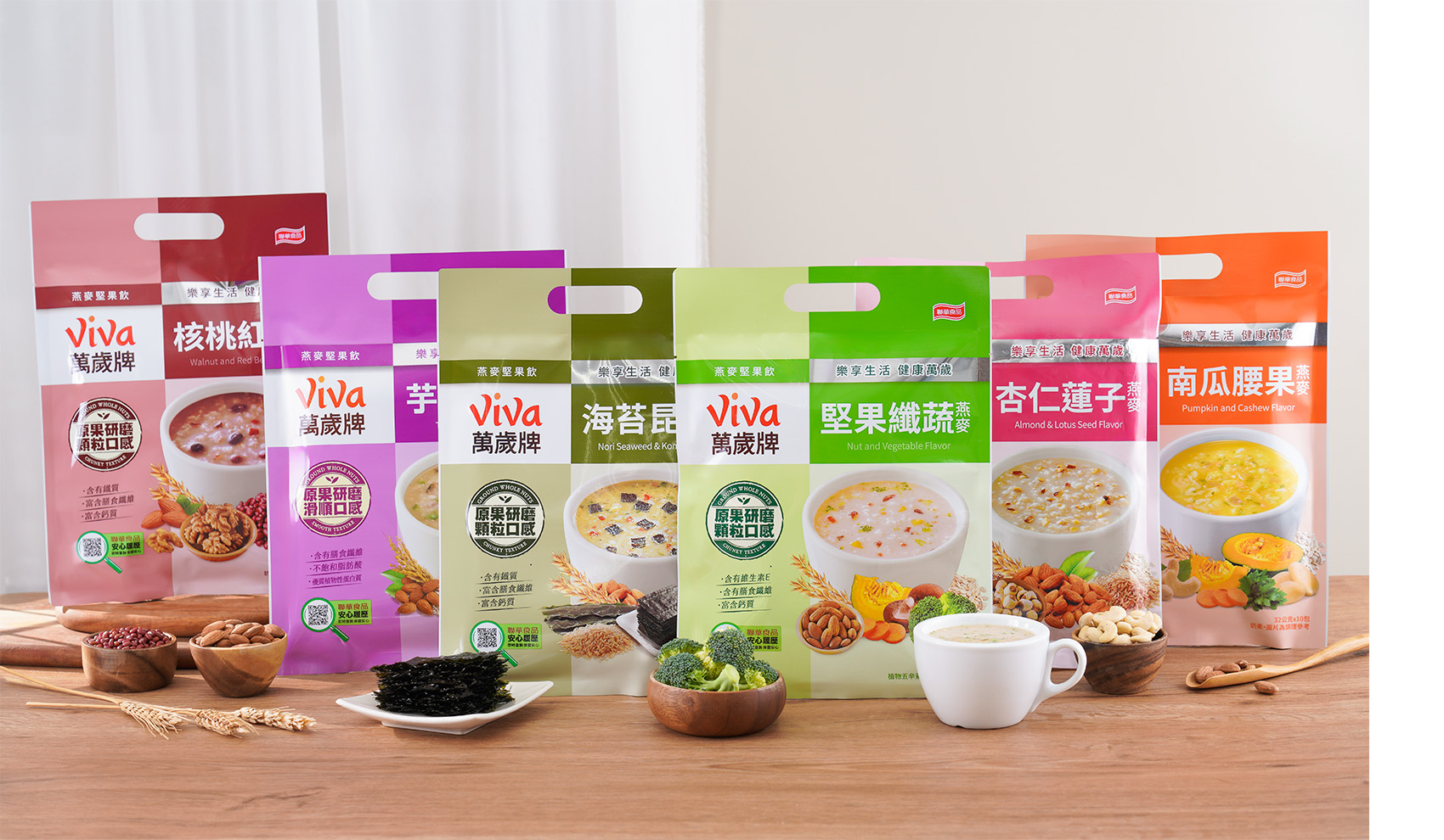 萬歲牌堅果原料,皆是聯華食品採購團隊親臨世界各地堅果產地所精心挑選,並在生產製程上持續不斷精進,堅持提供最優異的堅果品質,多年來深受消費者喜愛,成為眾所周知的台灣堅果第一品牌。產品開發方面,萬歲牌持續推陳出新,從純堅果到混搭果乾、小魚等原料,從不同調味方式滿足消費者口慾,從堅果隨手包到體面大方的堅果禮盒,更拓展到喝的堅果沖調飲,提供全家大小最健康的零食點心,讓大家吃得滿足又開心,盡情享受堅果的美味,Viva!堅果萬歲!