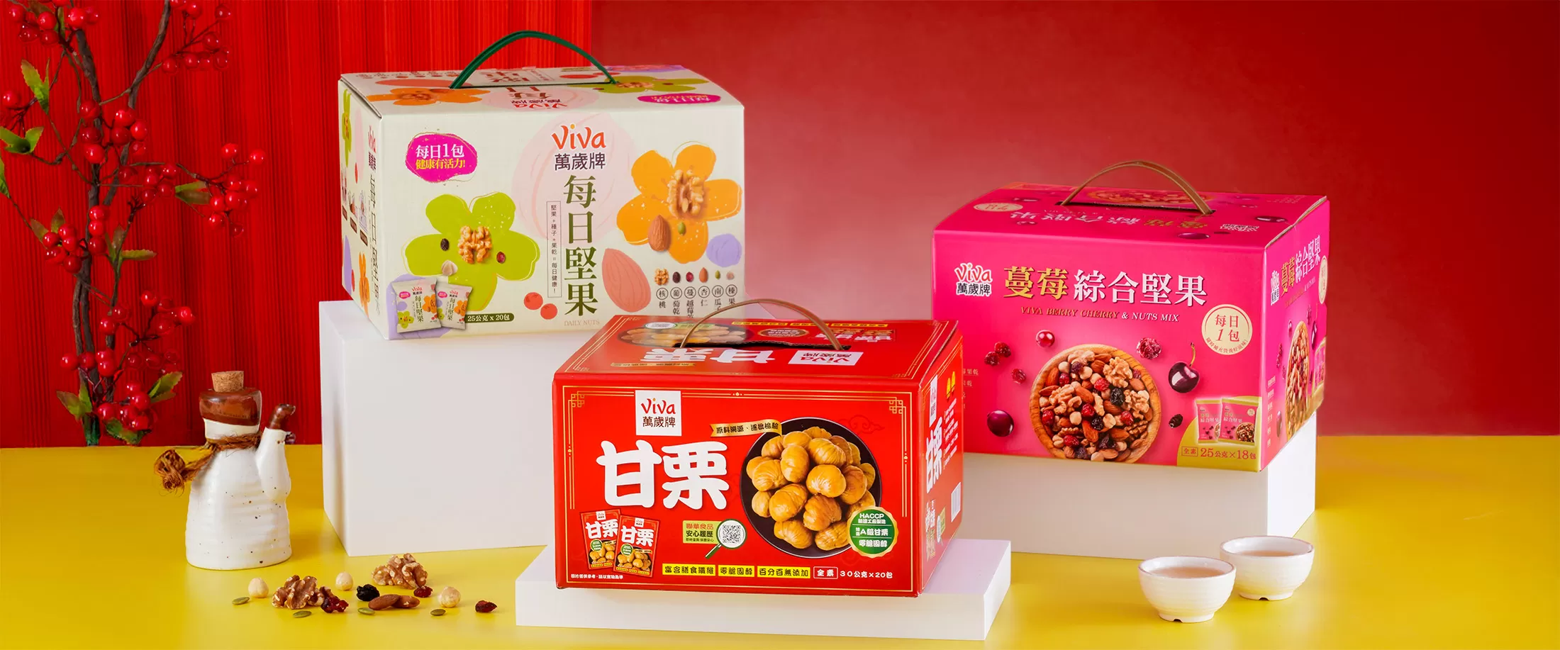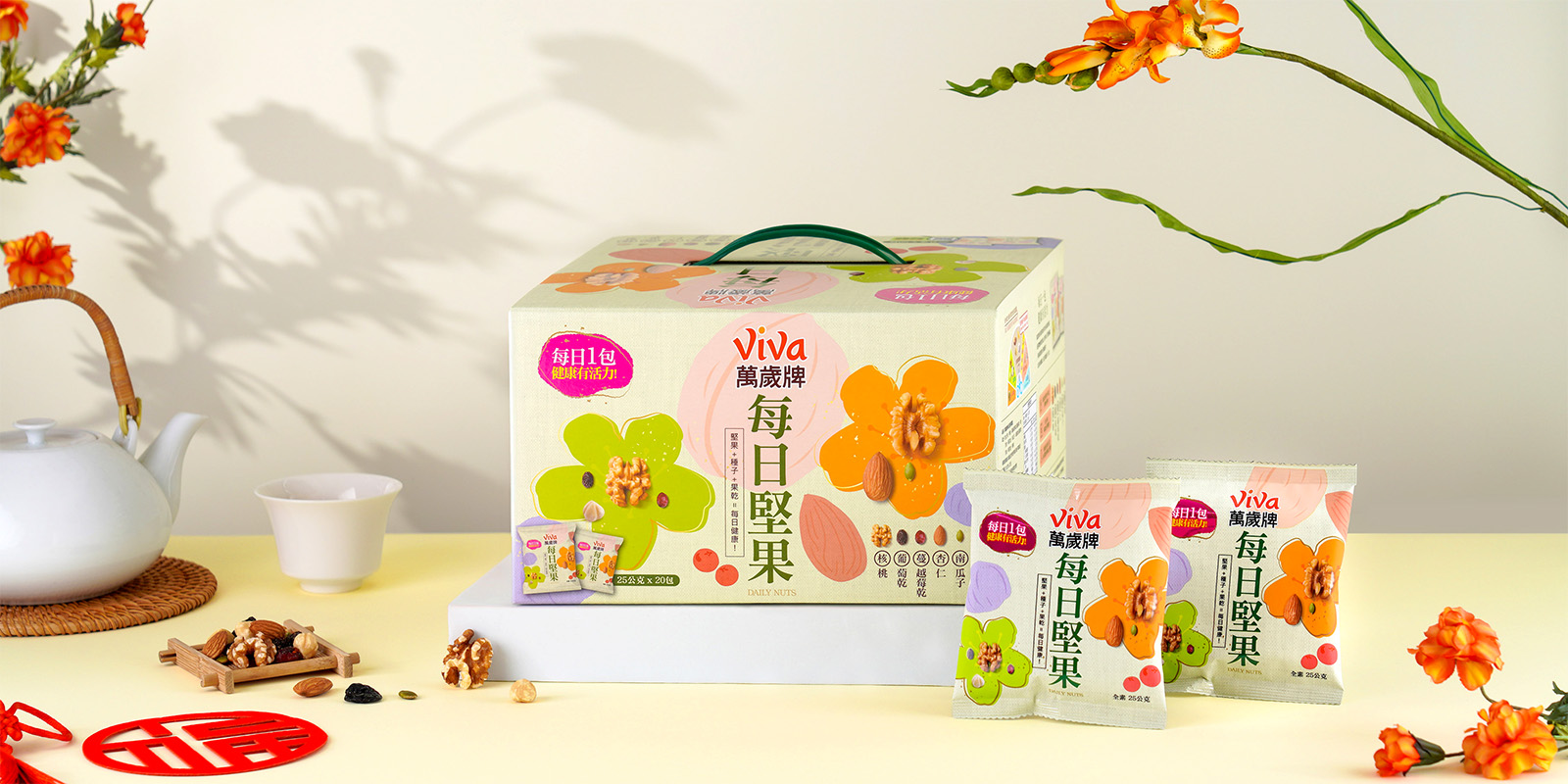萬歲牌堅果原料,皆是聯華食品採購團隊親臨世界各地堅果產地所精心挑選,並在生產製程上持續不斷精進,堅持提供最優異的堅果品質,多年來深受消費者喜愛,成為眾所周知的台灣堅果第一品牌。產品開發方面,萬歲牌持續推陳出新,從純堅果到混搭果乾、小魚等原料,從不同調味方式滿足消費者口慾,從堅果隨手包到體面大方的堅果禮盒,更拓展到喝的堅果沖調飲,提供全家大小最健康的零食點心,讓大家吃得滿足又開心,盡情享受堅果的美味,Viva!堅果萬歲!